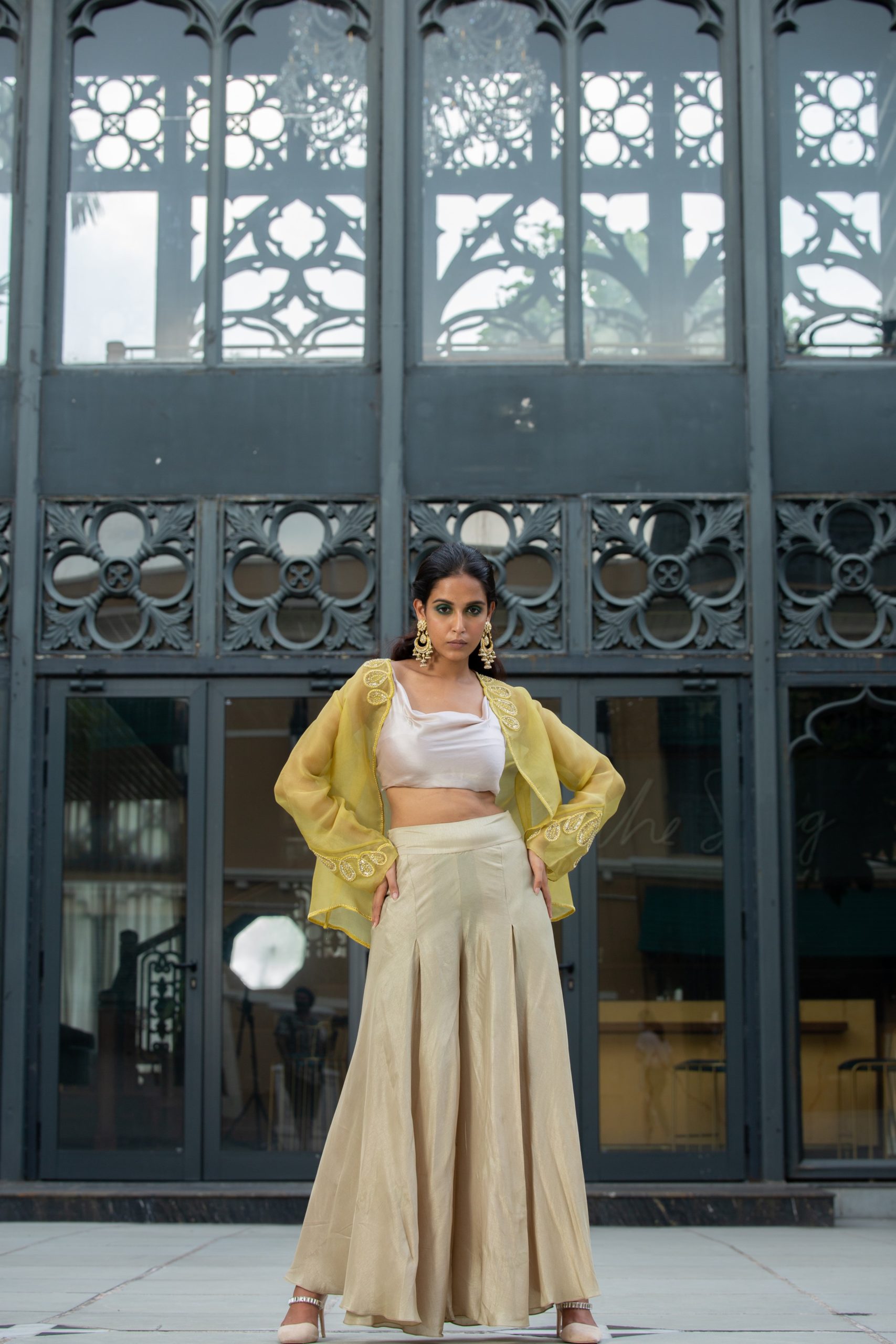 Discover the Peacock Elegance Drape Viscose Satin Pants by House of Ksara. These beige viscose satin pants feature a sophisticated drape silhouette, perfect for haldi functions, after parties, and formal brunches. Handcrafted with meticulous attention to detail, they blend traditional artistry with modern elegance, empowering you to exude confidence and grace with every step.