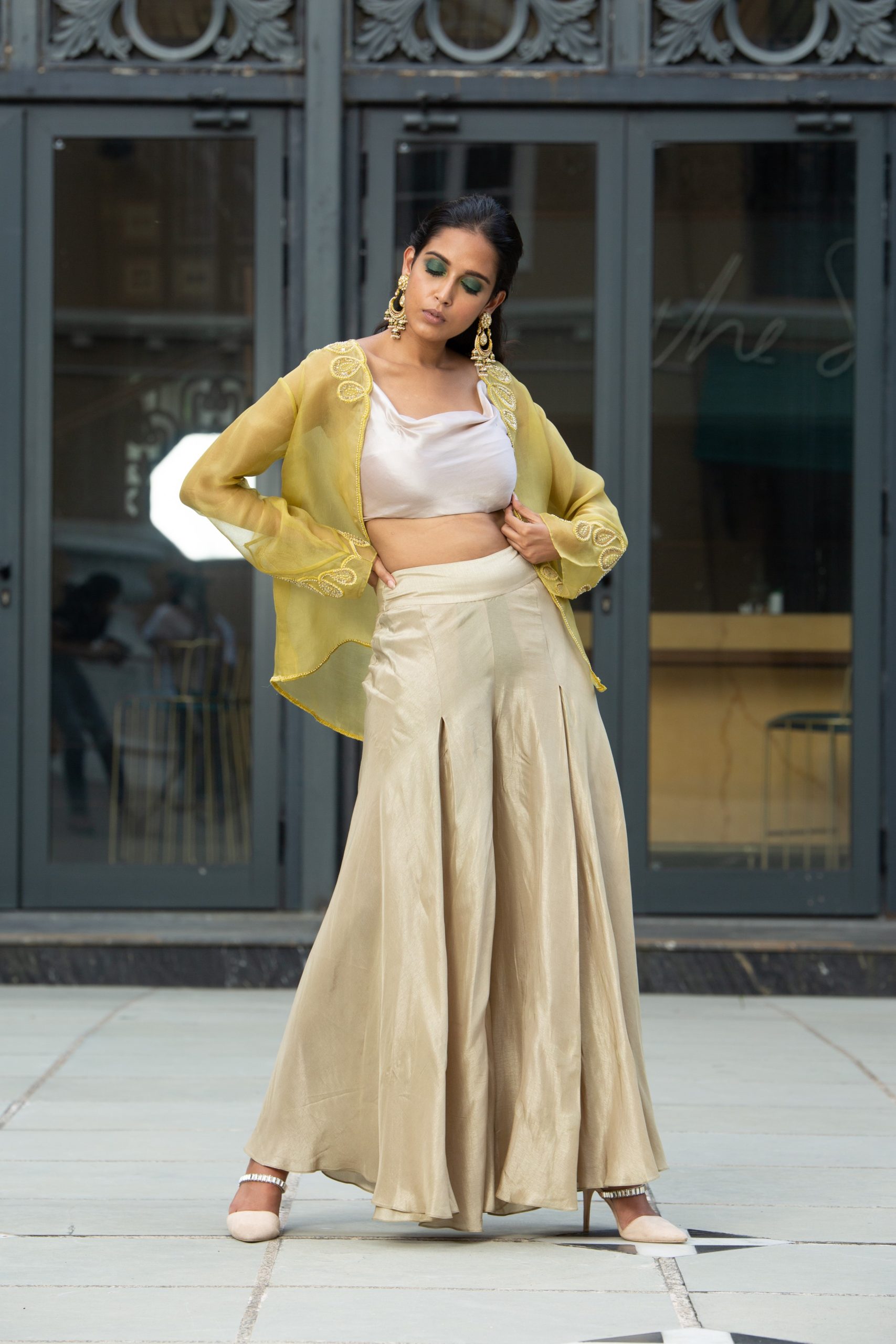 Beige Satin Organza Pant