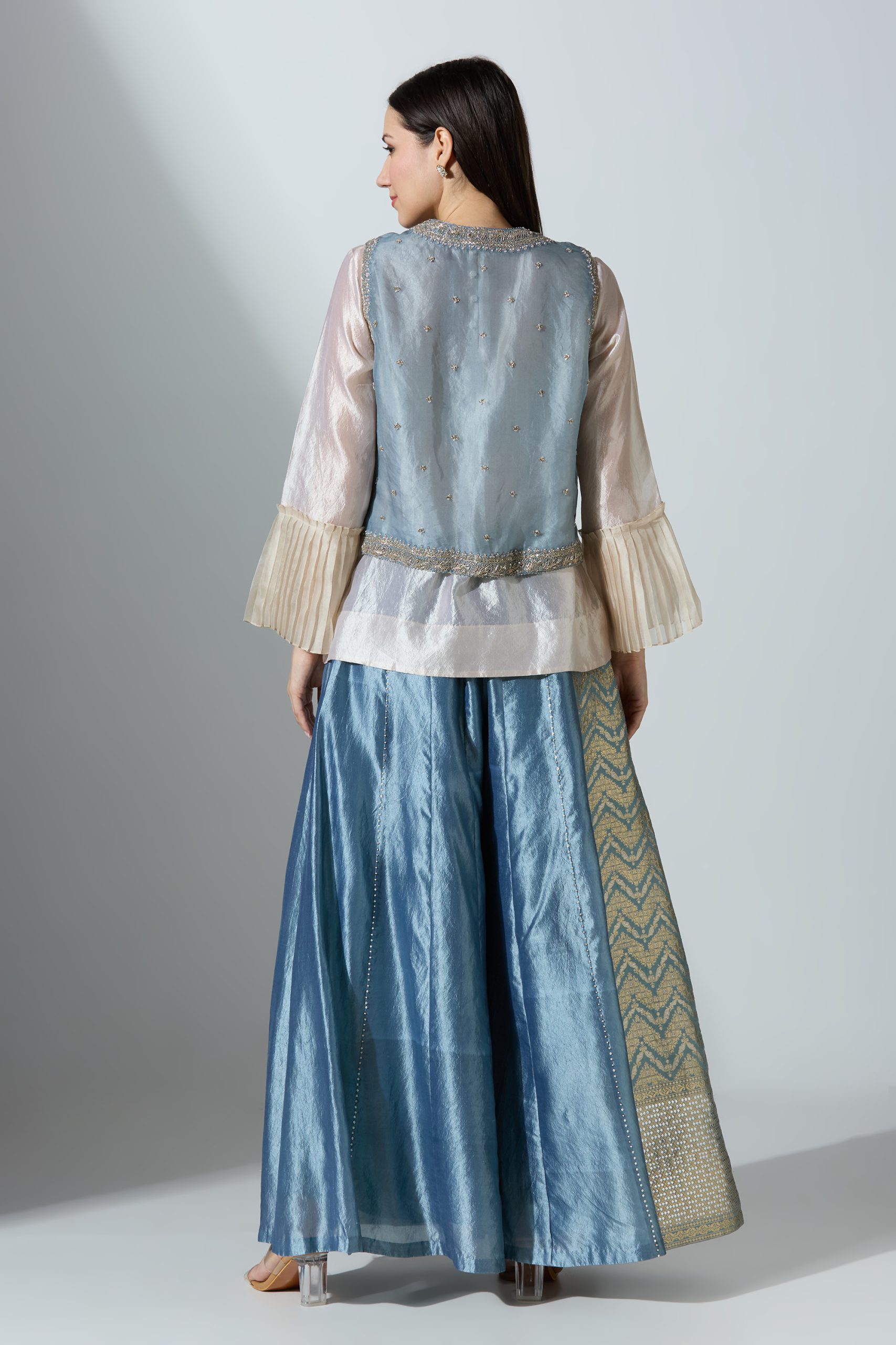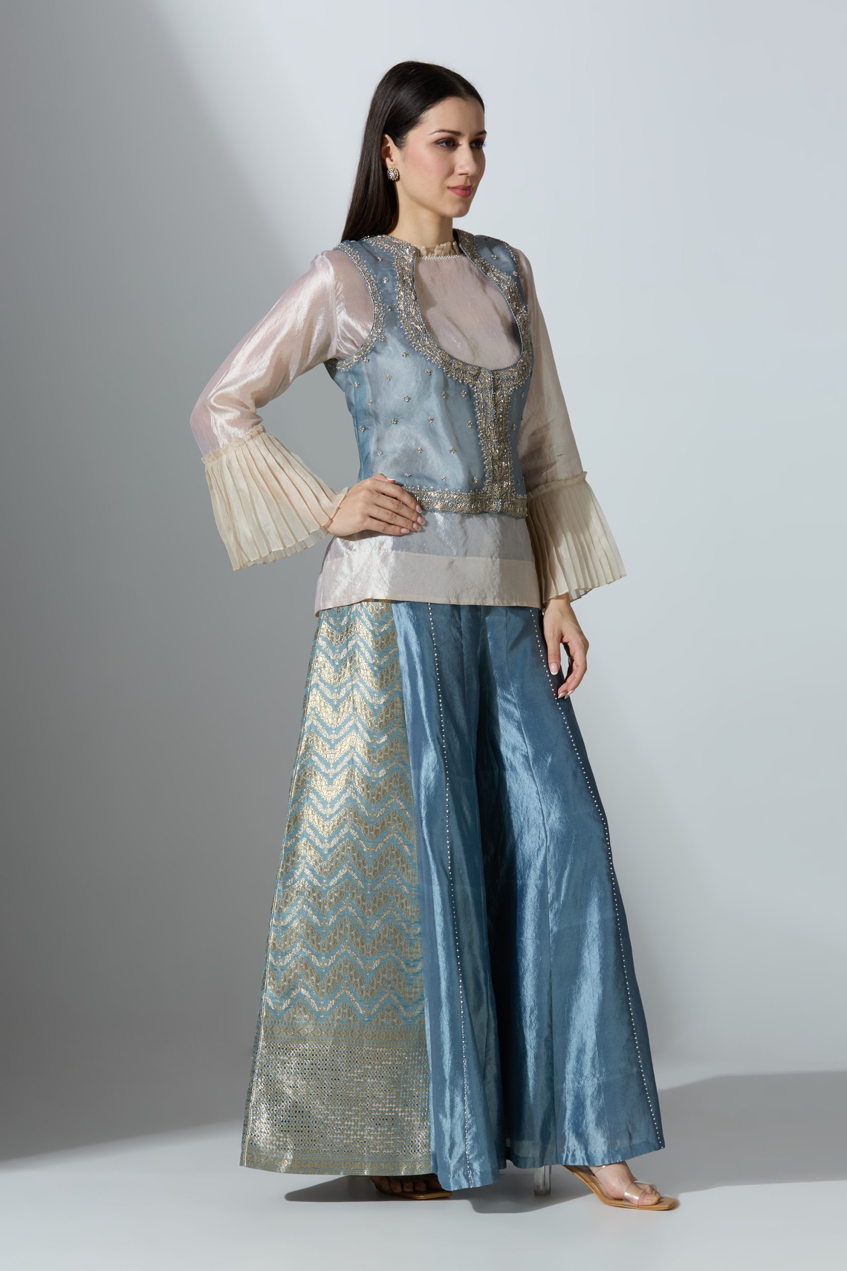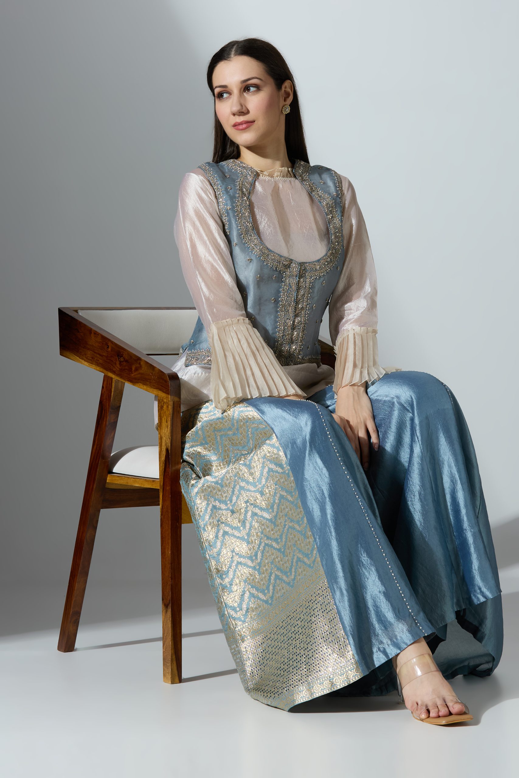 Discover elegance and sustainability with our Royal Blue Brocade Panel Pants from the ‘Woven Vogue’ collection by House of Ksara. Crafted with intricate thread bead work on luxurious brocade fabric, these pants are designed for comfort and style at sangeet events, engagements, and milestone celebrations. Embrace the heritage of Banarasi craftsmanship with every wear, ensuring timeless elegance for the modern woman.