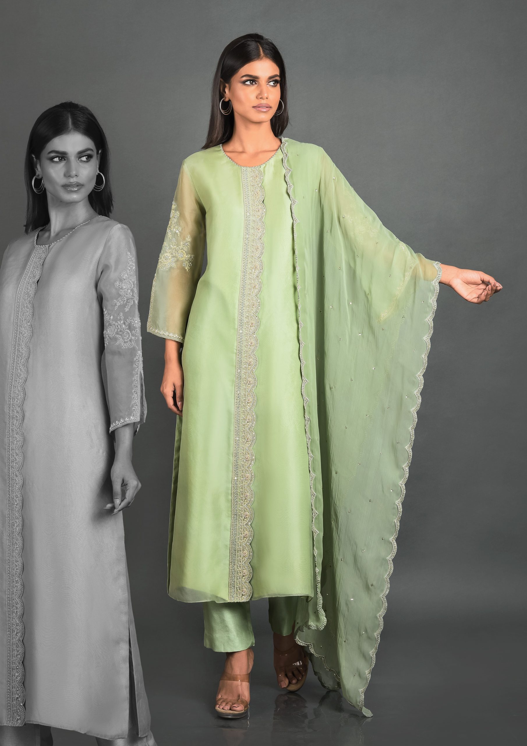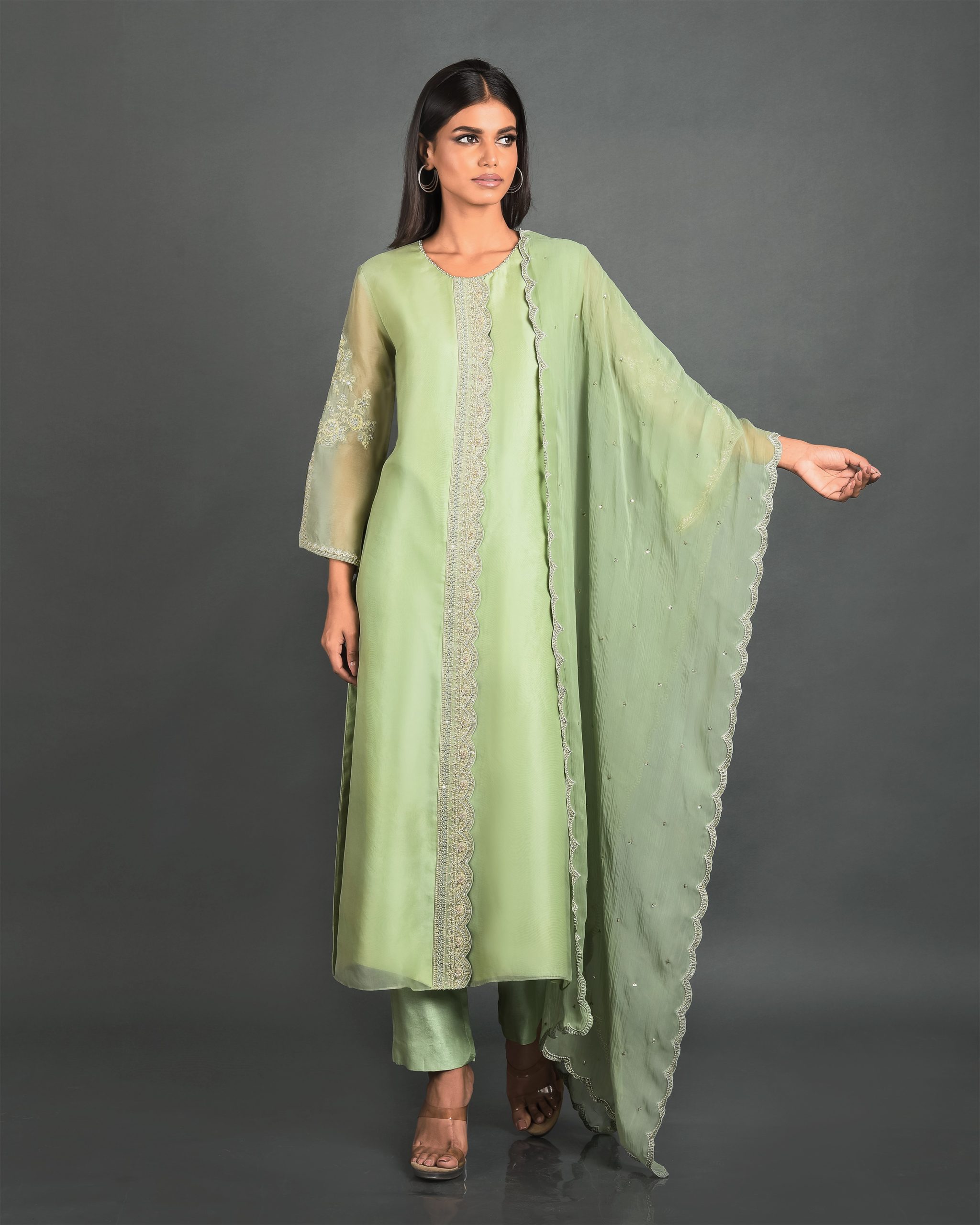 Green Organza Kurta