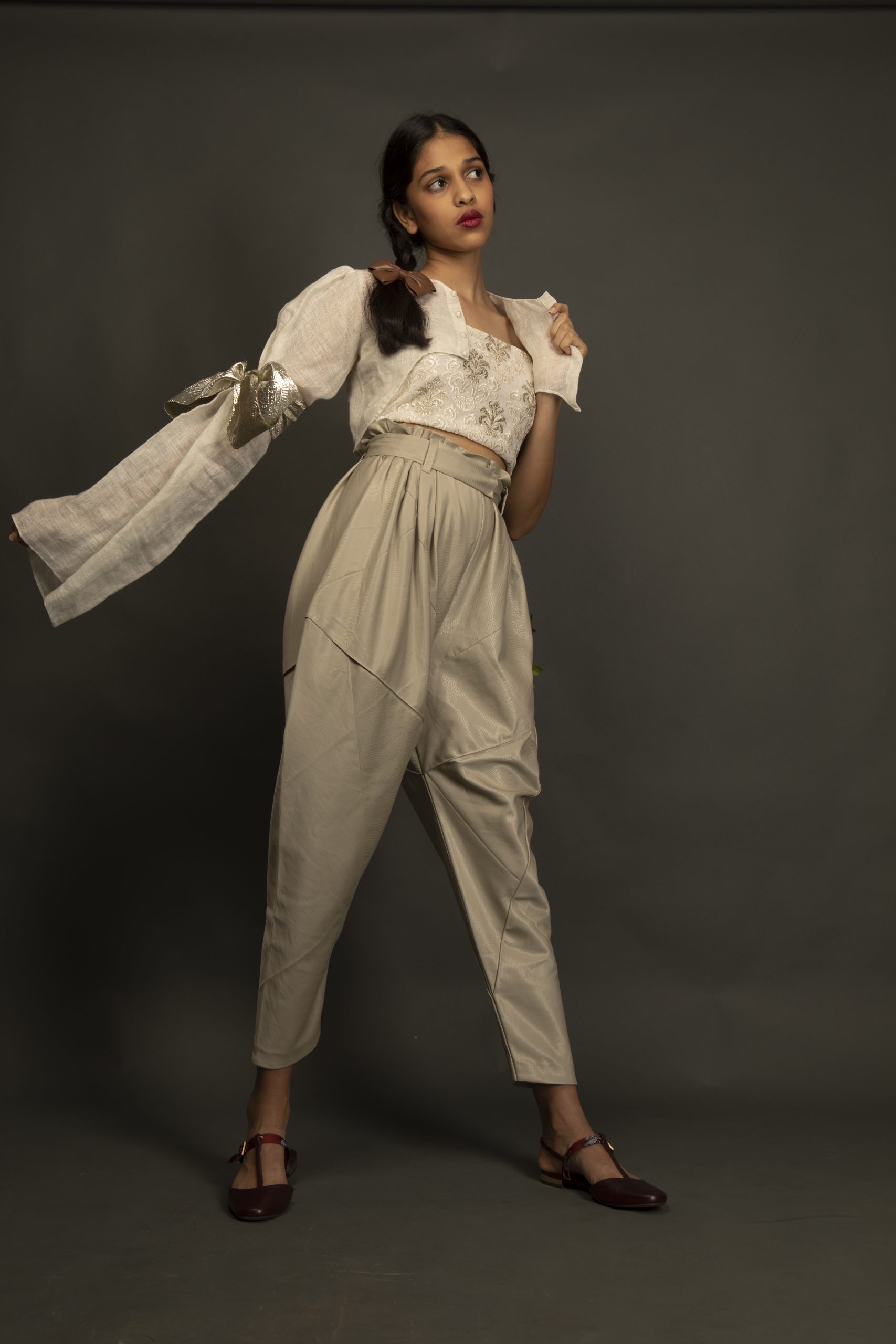 Embrace elegance and playful charm with the Ethereal White Linen Bustier from House of Ksara. This sleeveless, short bustier features a round neckline and delicate bow accents, perfect for gatherings, after-parties, and evening get-togethers. Handcrafted from premium linen, it celebrates individuality and the carefree spirit of youth, making it a timeless and cherished addition to your wardrobe.